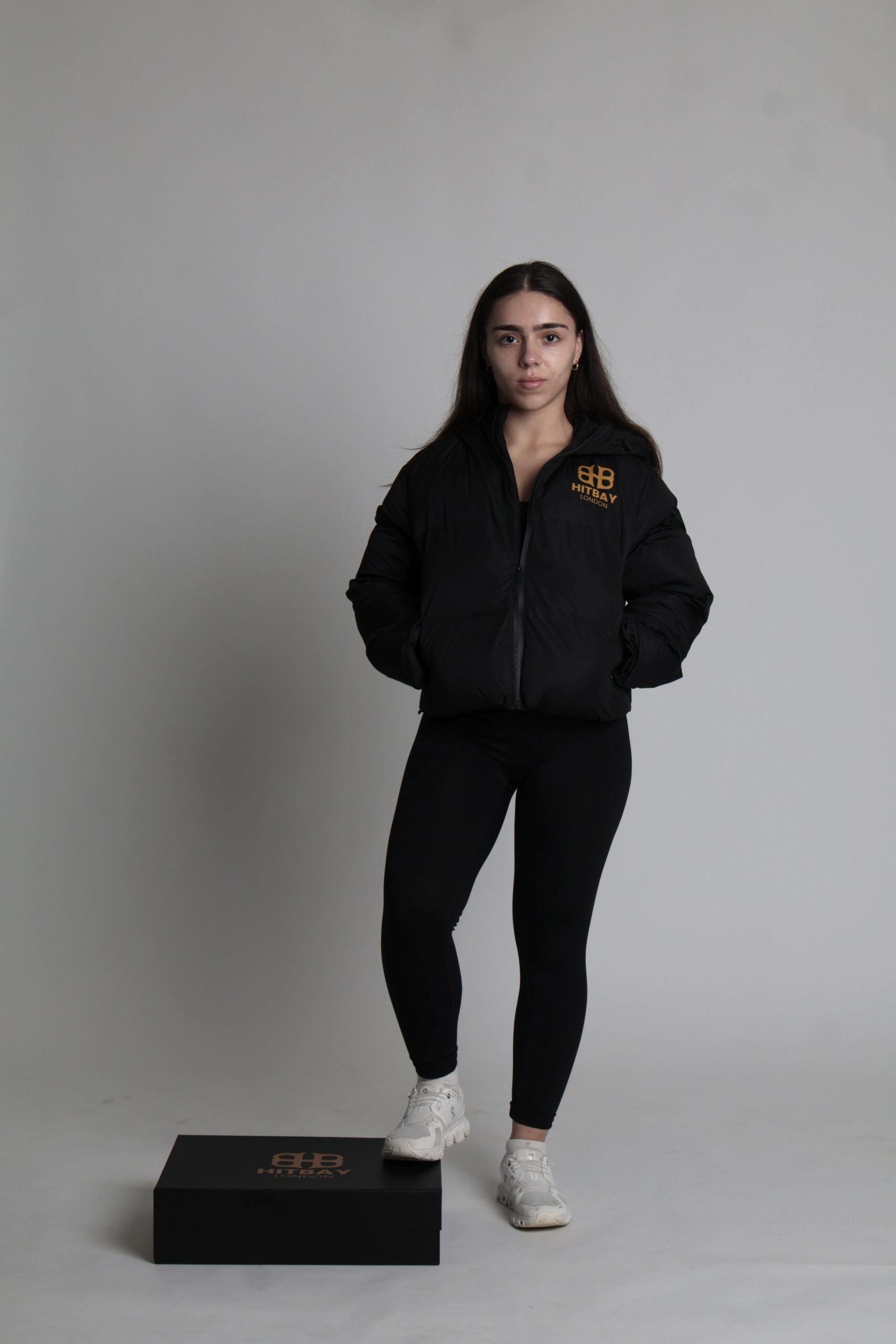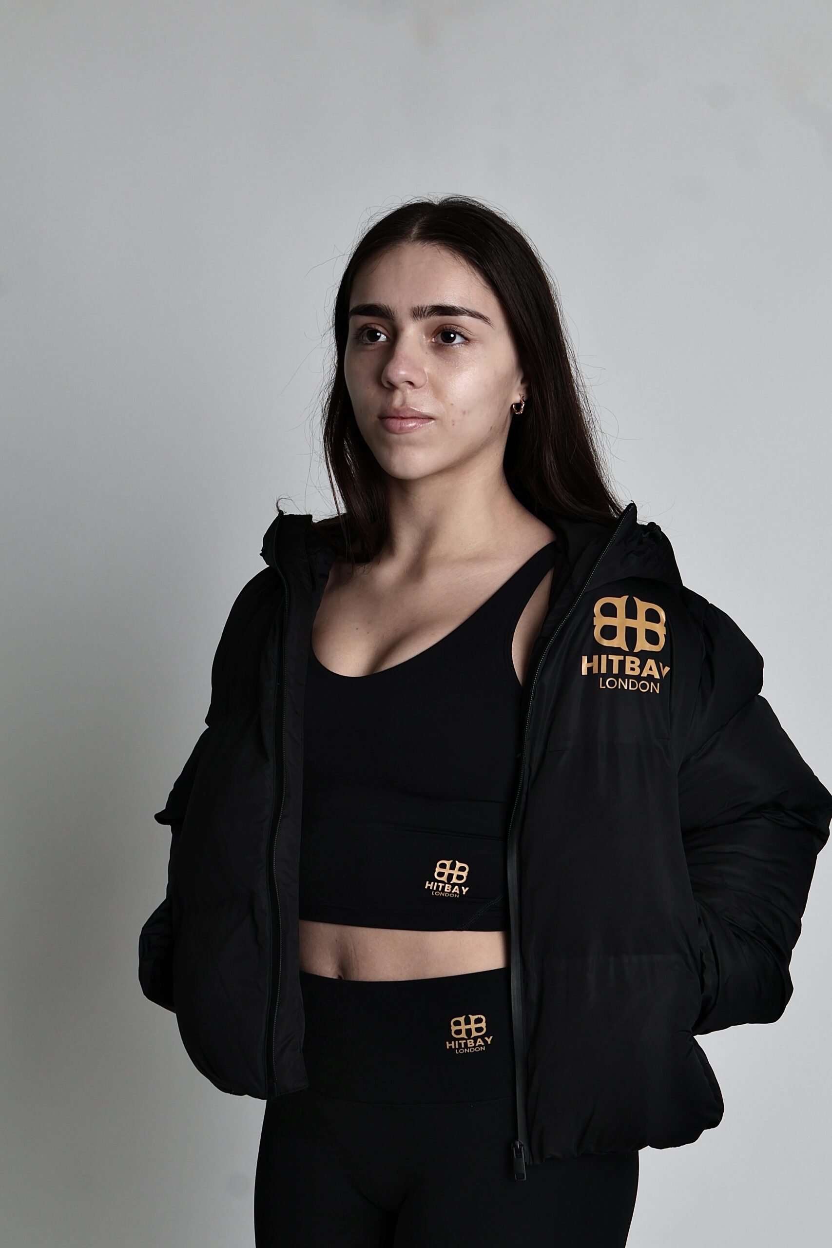 Its regular fit allows easy layering over sweatshirts or tees, while the water-resistant outer shell ensures you stay dry during drizzles and light snow. The minimalist silhouette, coupled with clean stitching and subtle logo detailing, reflects HitBay London’s signature luxury-streetwear aesthetic — modern, bold, and undeniably feminine.